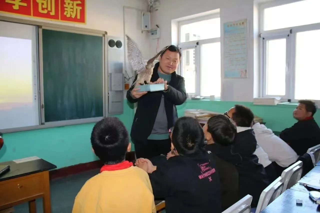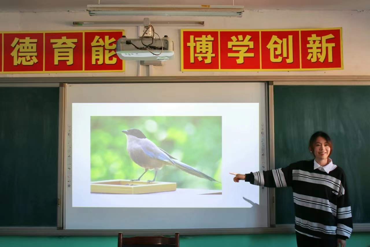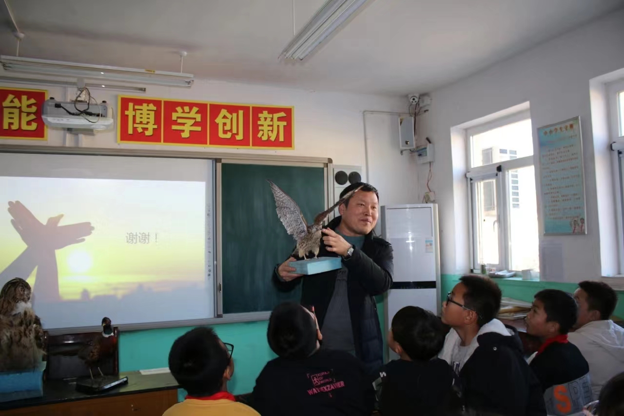 活动开始前,青县林庄子小学领导老师对我院科普团队的到来表示了热烈的欢迎。活动伊始,李末老师、高文彬老师和学生志愿者分别通过播放PPT的形式,围绕鸟类的现状、鸟类的重要性和如何保护鸟类三方面为小学生们带来了一场鸟类科普讲座。我院老师和学生志愿者又通过展示各种常见鸟类的图片,生动形象地介绍了周边鸟类的生活习性和外形特征,让小学生们对鸟类有了更深入的了解,激发了小学生们保护鸟类的热情。